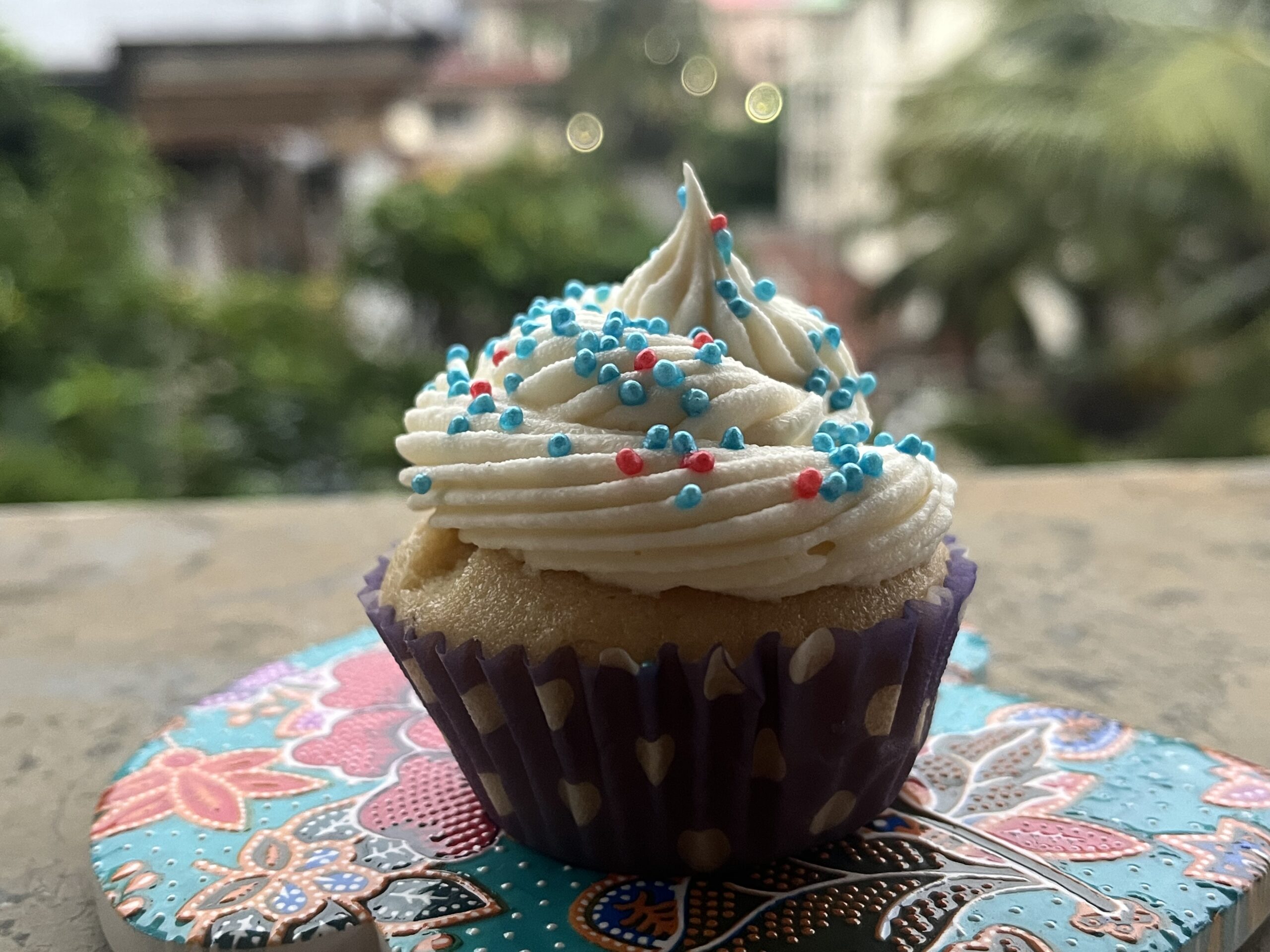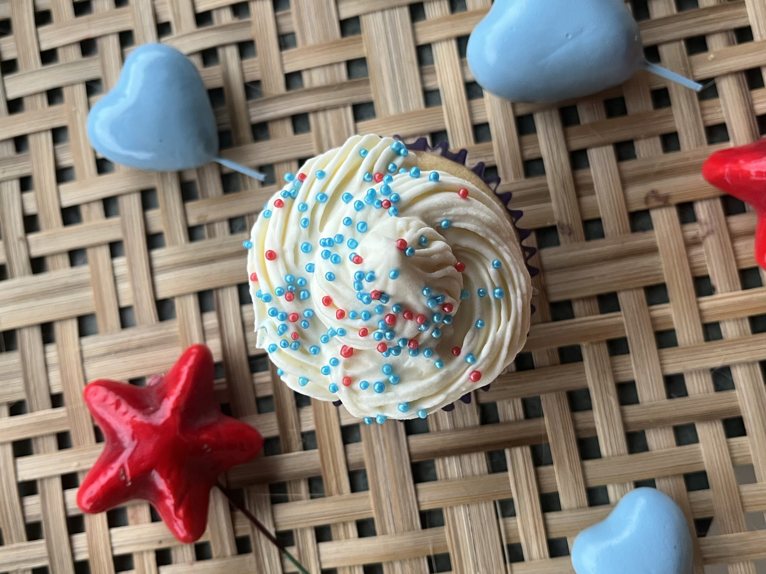 Baked with a soft, fluffy vanilla sponge and crowned with rich, creamy frosting, each cupcake is finished with a playful sprinkle of colors. Perfect for birthdays, parties, or just a cozy evening treat, this little delight is sure to bring a smile with every bite.
